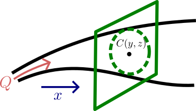 \[Q = \iint u C dy dz\]