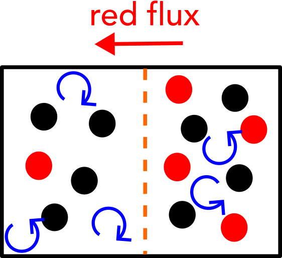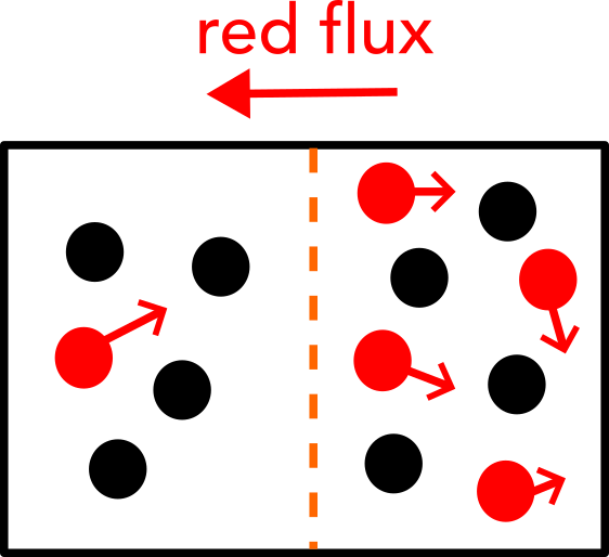 Concentration gradient + Diffusion ⇒ Flux